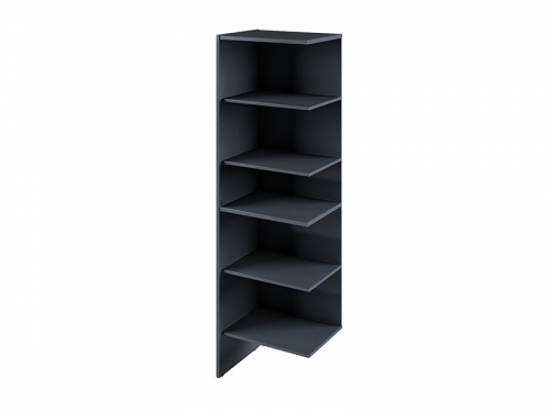Имеет четыре полки для размещения папок формата А4 и одну полку для папок формата А5.