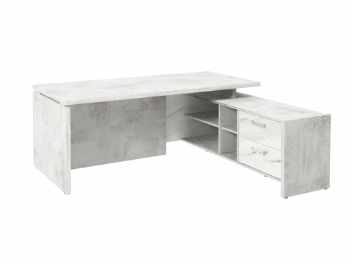 Столешница, бок стола и бок тумбы выполнены из ЛДСП толщиной 38 мм. Цвет - "Хромикс белый". Кромка 2 мм.
