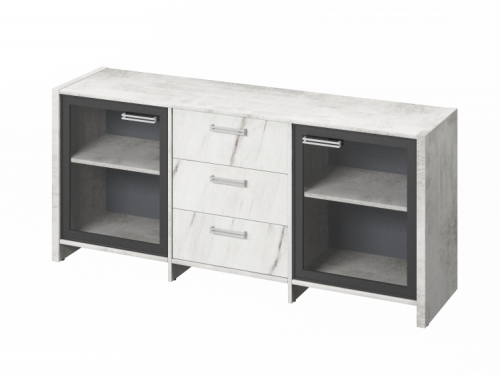 Тумба трехсекционная с 2 дверьми FI-13-02.G Хромикс белый/Мрамор Леванто белый